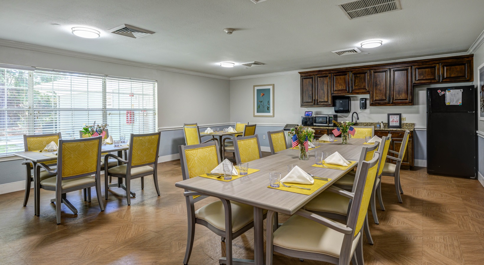 • dining room with long table and seating